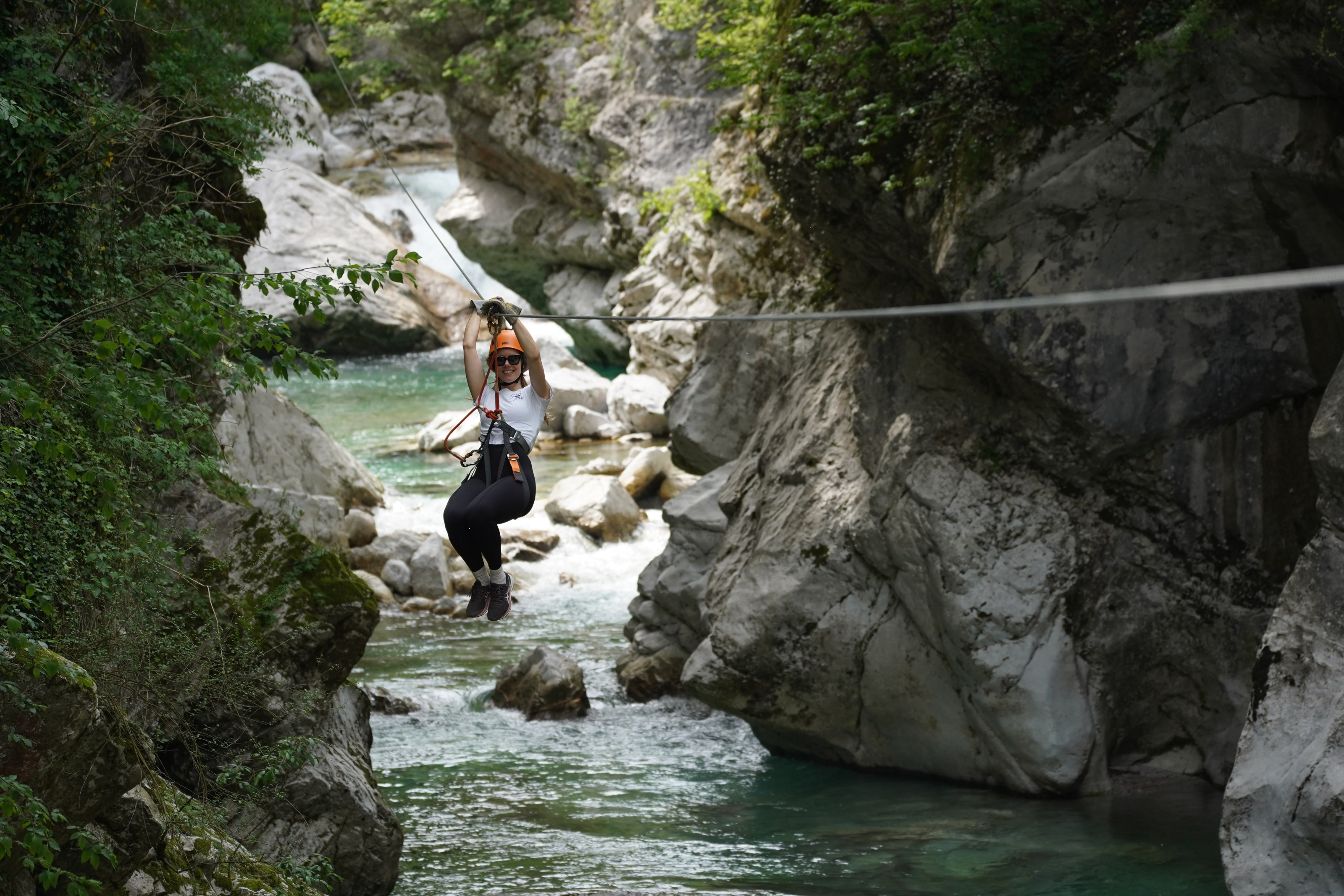 Készen állsz a repülésre? Tapasztald meg a határtalan szabadságot az Učja-kanyon felett, Európa egyik leglátványosabb zipline parkjában! 10 hatalmas acélkötélen száguldhatsz át a szakadék felett, helyenként 200 méteres magasságban és 60 km/órás sebességgel. Ez a kétórás, profi vezetőkkel kísért kaland a lélegzetelállító panorámát ötvözi a tiszta adrenalinnal – tökéletes választás családoknak és izgalomra vágyóknak egyaránt, Bovectől mindössze néhány percre.